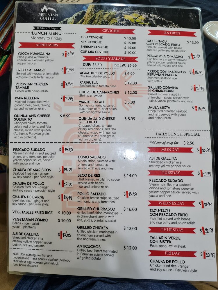 Highlights include the Chaufa con carne, a sumptuous fried rice dish featuring tender steak, and the creamy mariscos tamales, a fan favorite. Finish your meal with perfectly fried yuca fries and sweet plantains, known for their exceptional taste and texture. The friendly service enhances your experience, ensuring that every visit feels warm and welcoming.